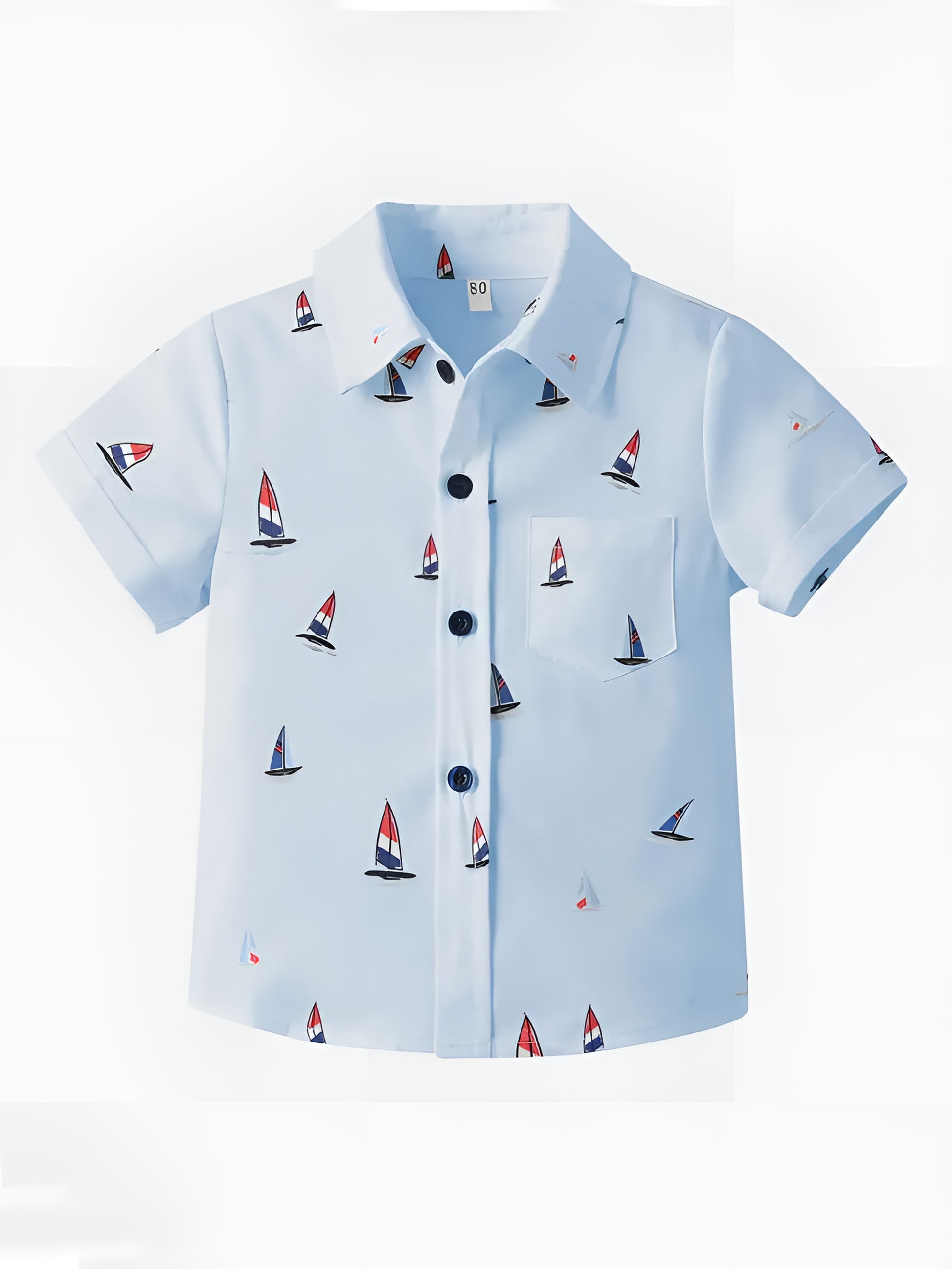 Baby Boys Pack of 2 Stylish Printed Short Sleeve Shirts - Sailboat & Striped Designs for Trendy Outfits By Shinydots