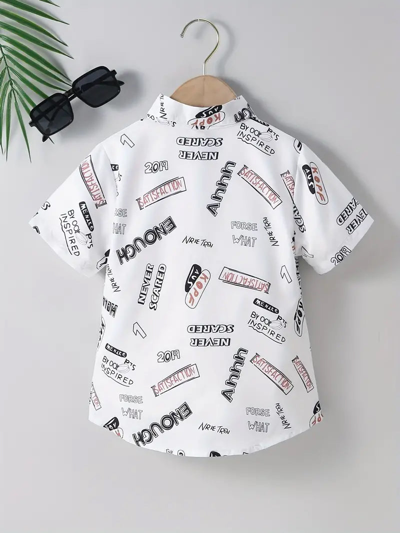 Boys White Latter Graphic Print Kids Short Sleeve Shirt-Casual Boy Shirt By Shinydots