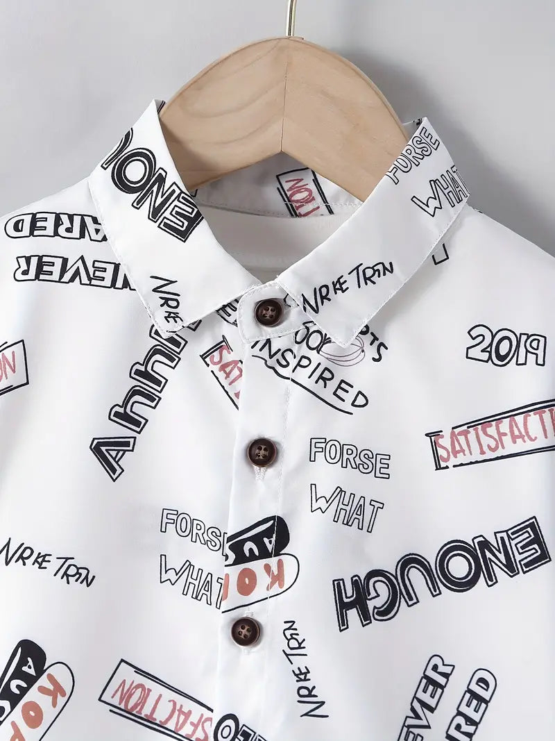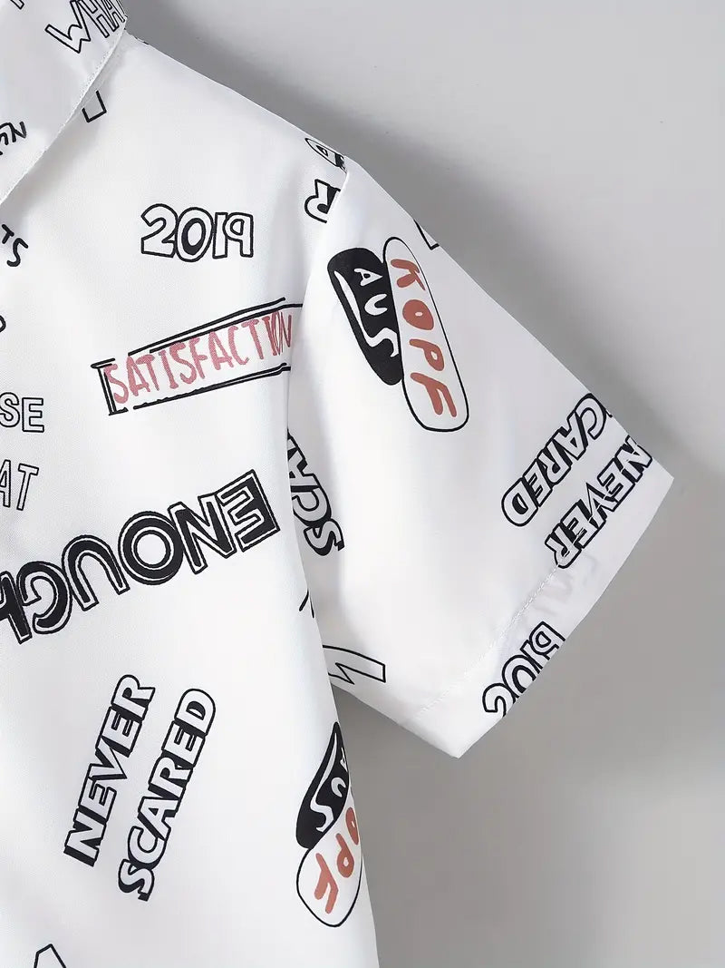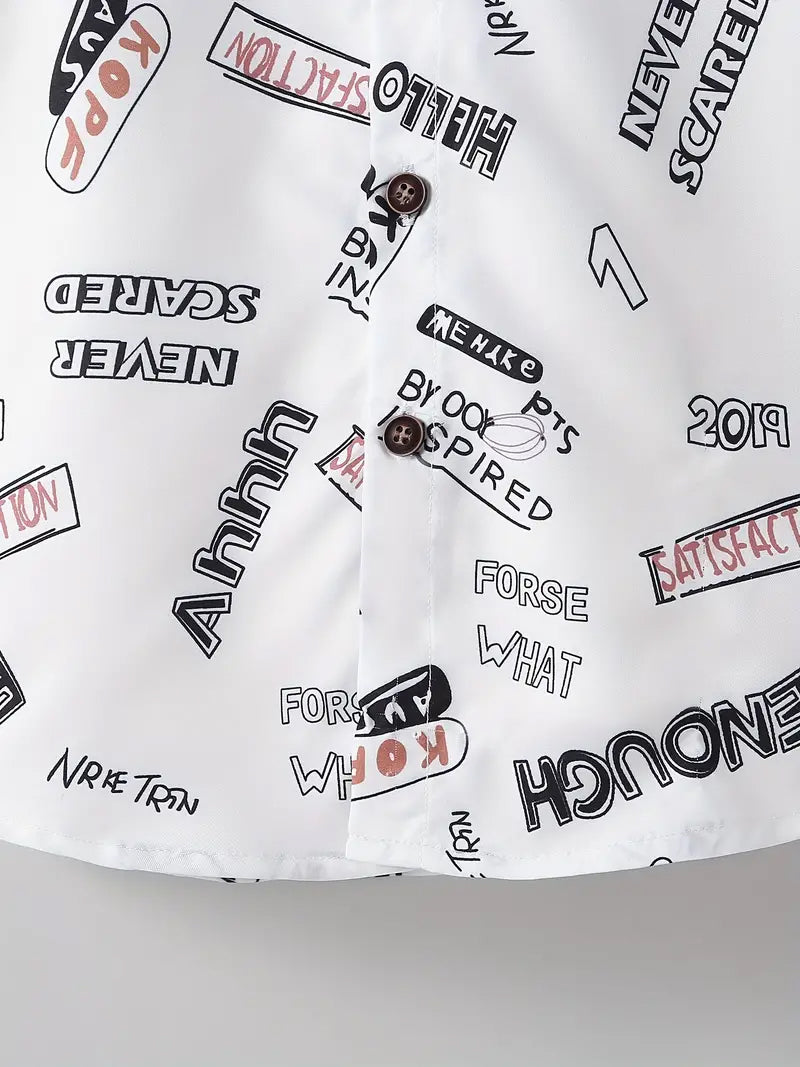 Let your little trendsetter stand out with our White Graphic Print Short-Sleeve Shirt from ShinyDots! Designed for modern, streetwear-inspired fashion, this lightweight cotton blend shirt is perfect for summer. Featuring bold lettering prints and trendy typography, this shirt is a statement piece for any casual outfit. The button-down front and relaxed fit make it easy to wear, while the breathable fabric keeps kids cool and comfortable all day. Ideal for summer outings, playdates, and everyday wear.