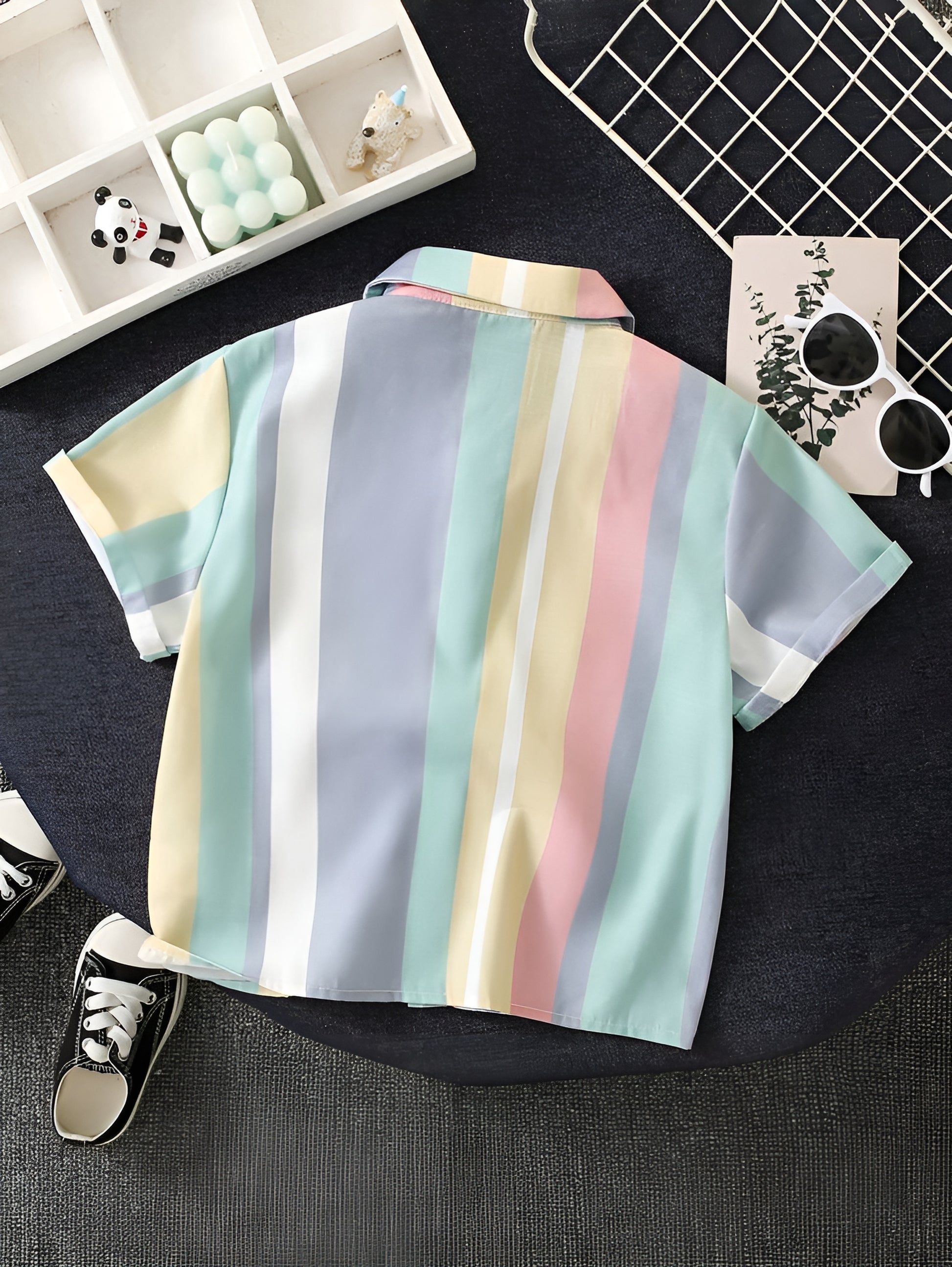 Multi striped Half Sleeve Shirt with Short Clothing Set for Boys