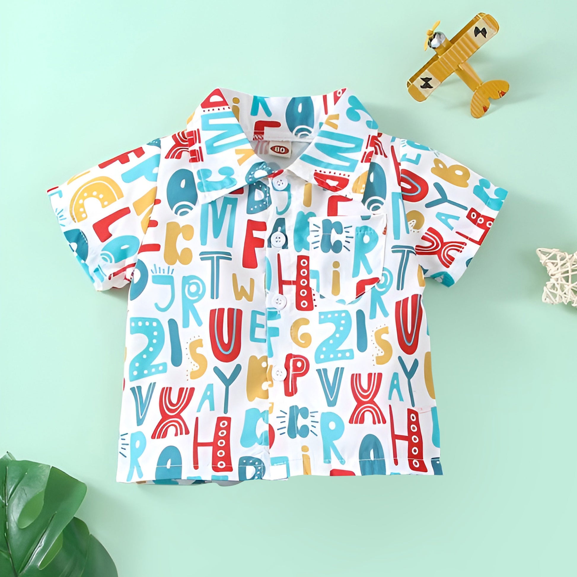 - Alphabet Print Shirt – A fun and educational twist with bold, colorful letters printed on crisp white cotton. Great for playdates and preschool days.