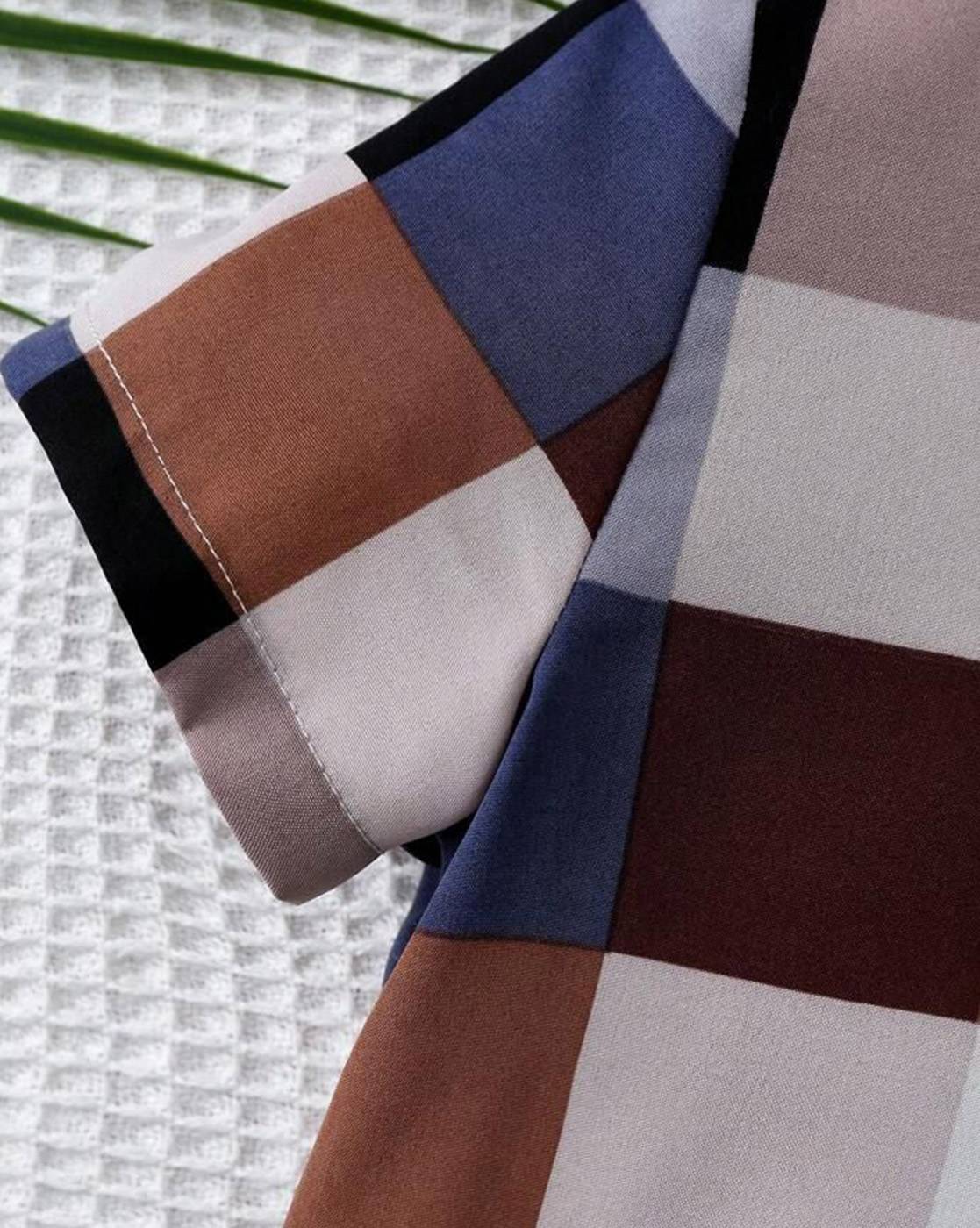 SHINYDOTS Baby Boy Plaid Checked Printed Short Sleeve Shirt & Shorts Two Piece Set