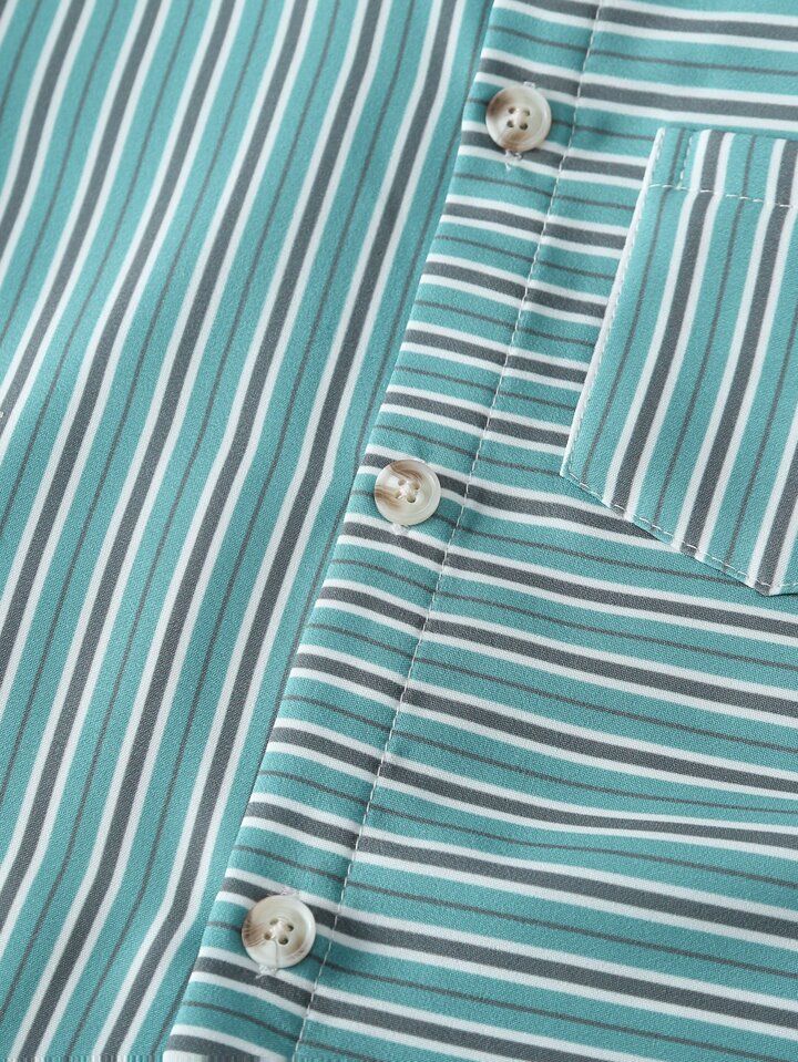 Make a style statement with this boys' short-sleeve striped shirt, perfect for summer adventures. Designed with a classic button-down front, soft collar, and a convenient chest pocket, this shirt combines comfort and fashion effortlessly. The breathable, lightweight fabric keeps your child cool during warm days, making it an excellent choice for beach outings, casual wear, or family gatherings.