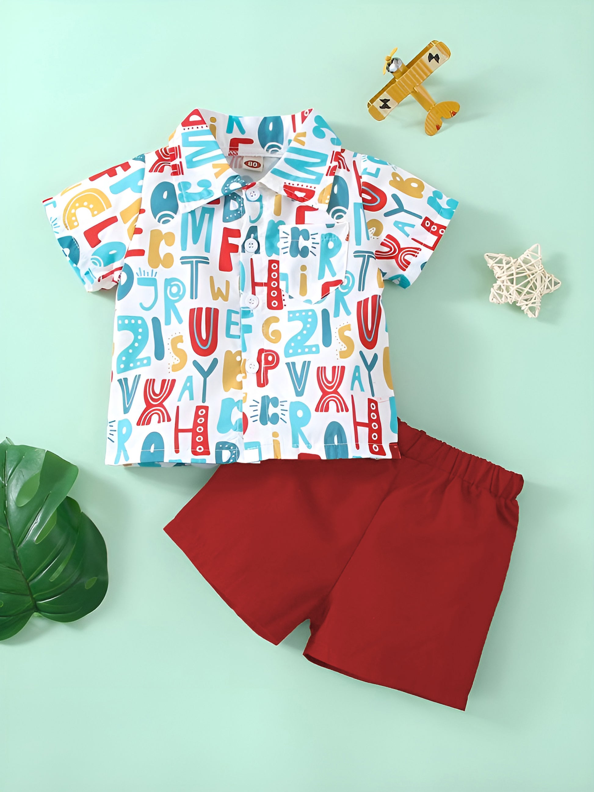 Make learning fun with this adorable alphabet print shirt and red shorts set! Featuring a playful mix of letters and numbers, this outfit is perfect for curious little minds. The lightweight and breathable fabric ensures comfort, making it an ideal choice for daily wear and special occasions.