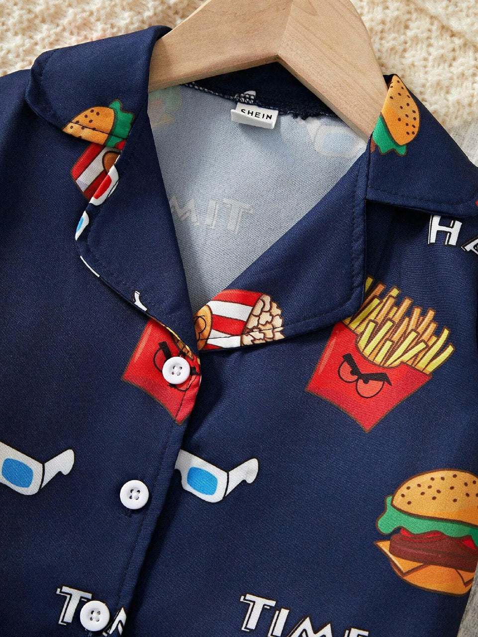 Trendy Baby Boys Navy Blue Fast Food Cinema Graphic Print Co-ord Set – Shirt & Shorts | Stylish Kids Outfit
